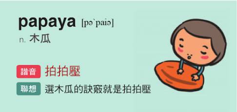 想像爸爸 (爸爸呀) 喜歡吃木瓜,或看到木瓜時興奮地喊「爸爸呀!」